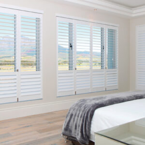 This system is perfect for patio doors, as it keeps each side of the shutter connected, allowing you to slide them easily back and forth. Choose from either open or closed bypass shutters. Open bypass shutters feature lovers that can remain open even when the doors are stacked right in front of each other, allowing you to enjoy unobstructed views. Closed bypass shutters have louvers that remain closed when the doors are stacked in front of each other, creating a more private home environment.